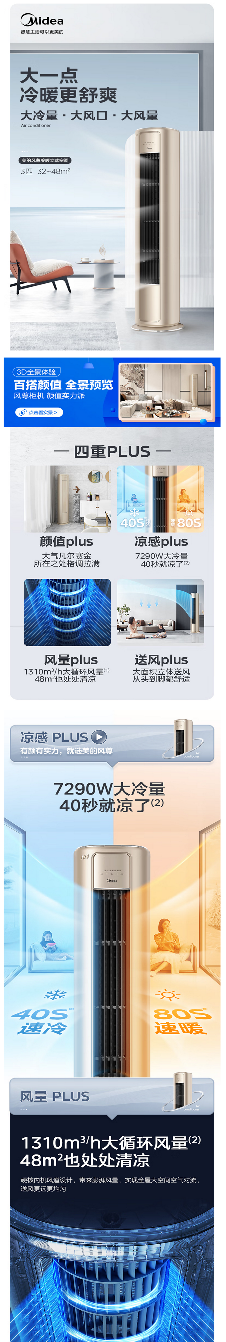 | 包装清单 | 立柜机1、室外机1、内机挂板、连接铜管、遥控器、说明书 |