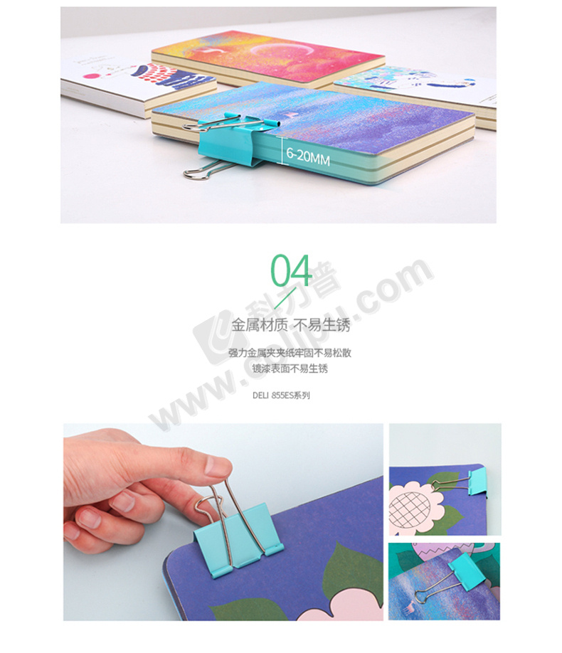 得力彩色长尾票夹 8554ES 4# 48只/筒