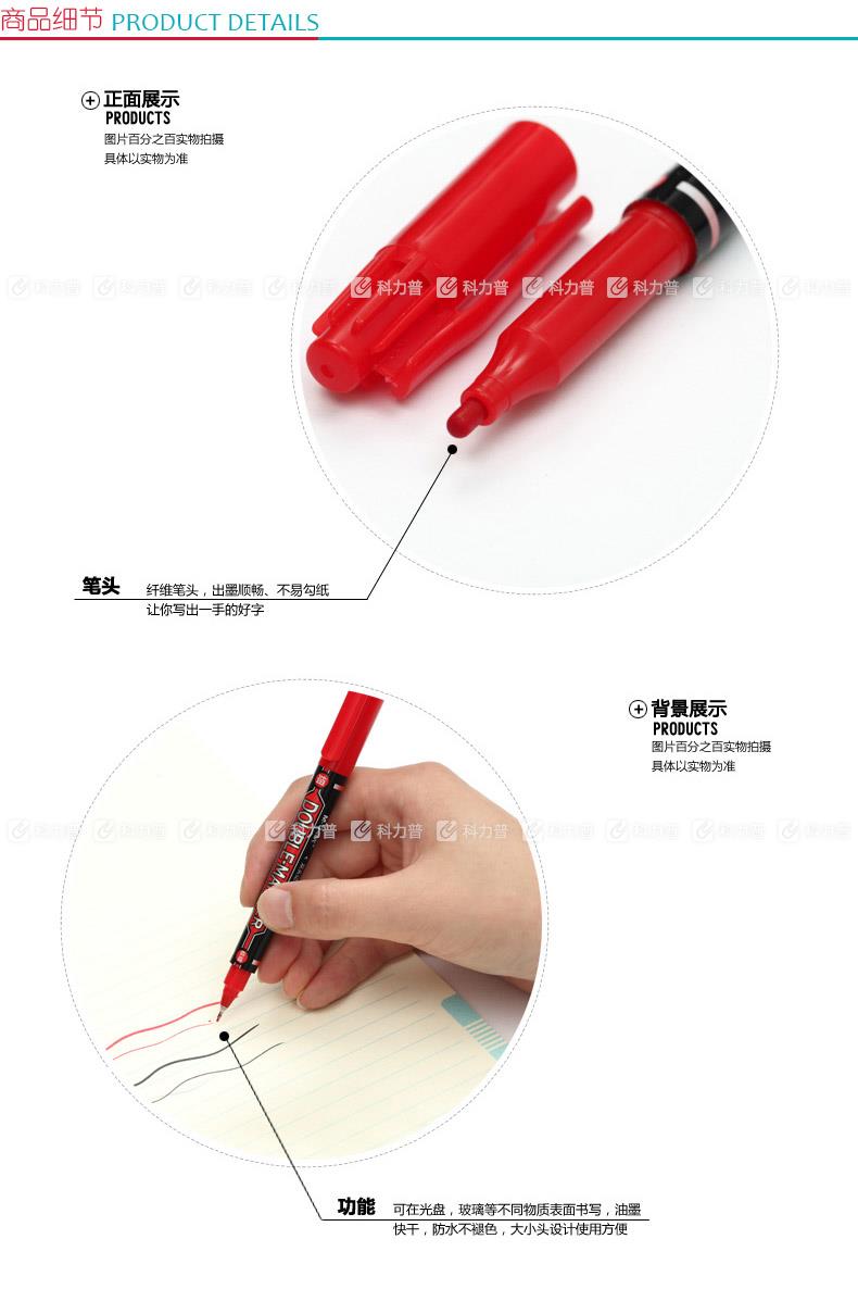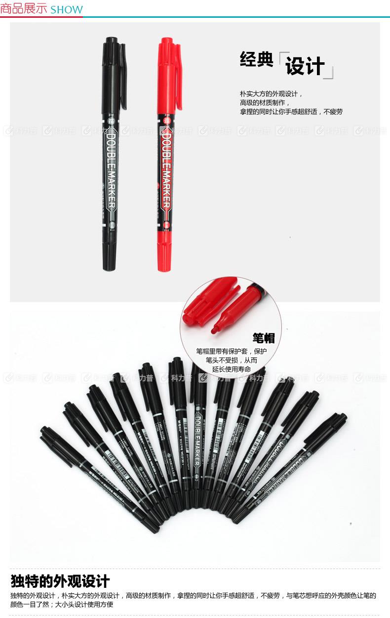 晨光 M&G 小双头记号笔 MG-2130 细头2.0mm,极细头0.5mm (红色) 12支/盒