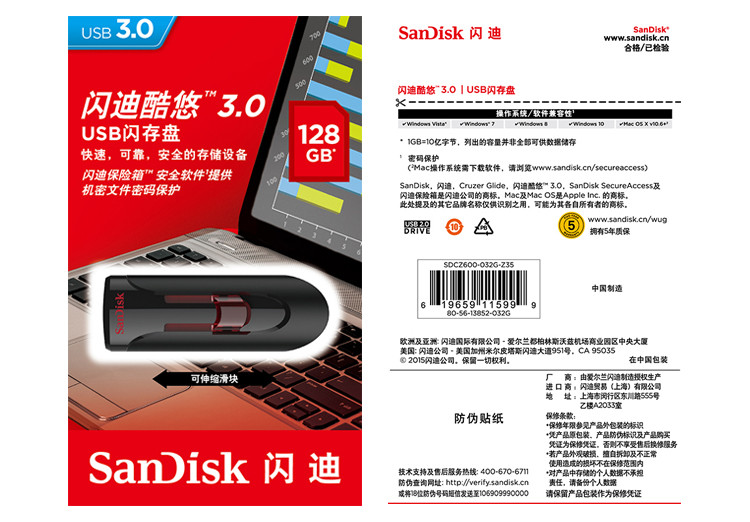 闪迪SanDiskU盘 优盘 CZ71 8G