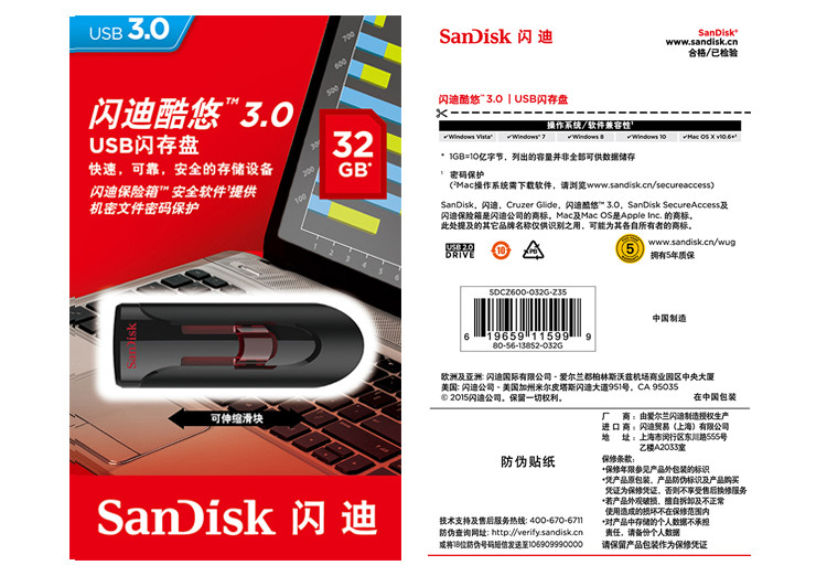 闪迪SanDiskU盘 优盘 CZ71 8G