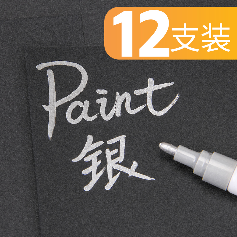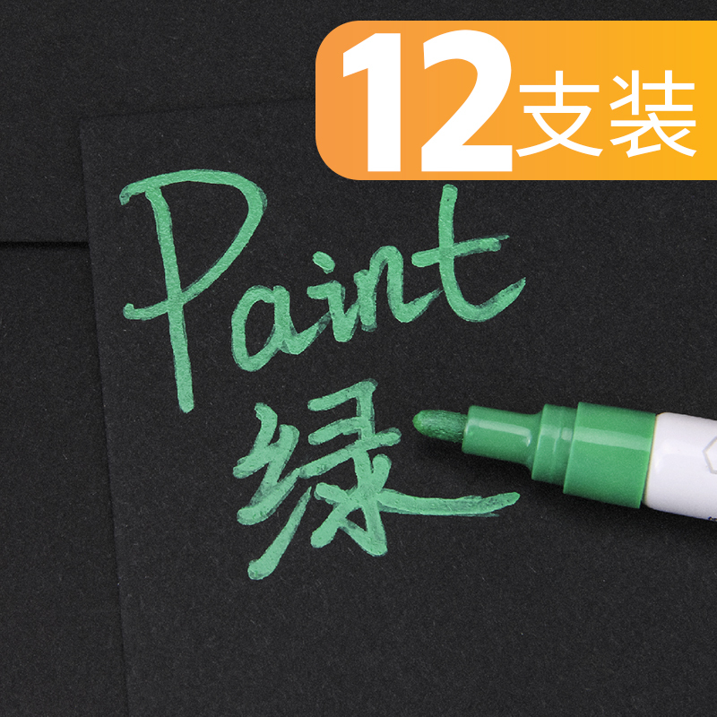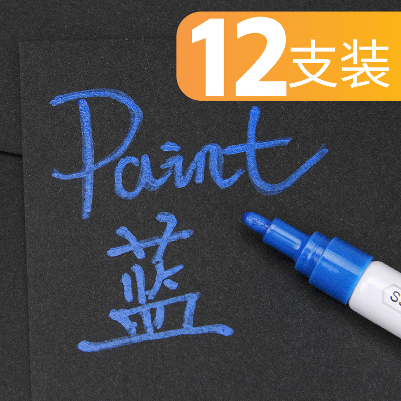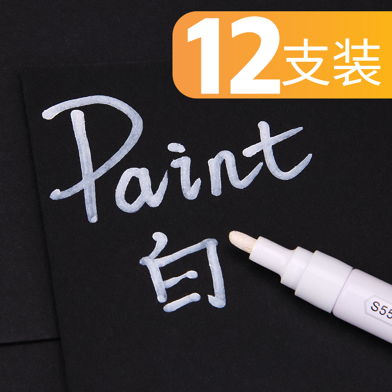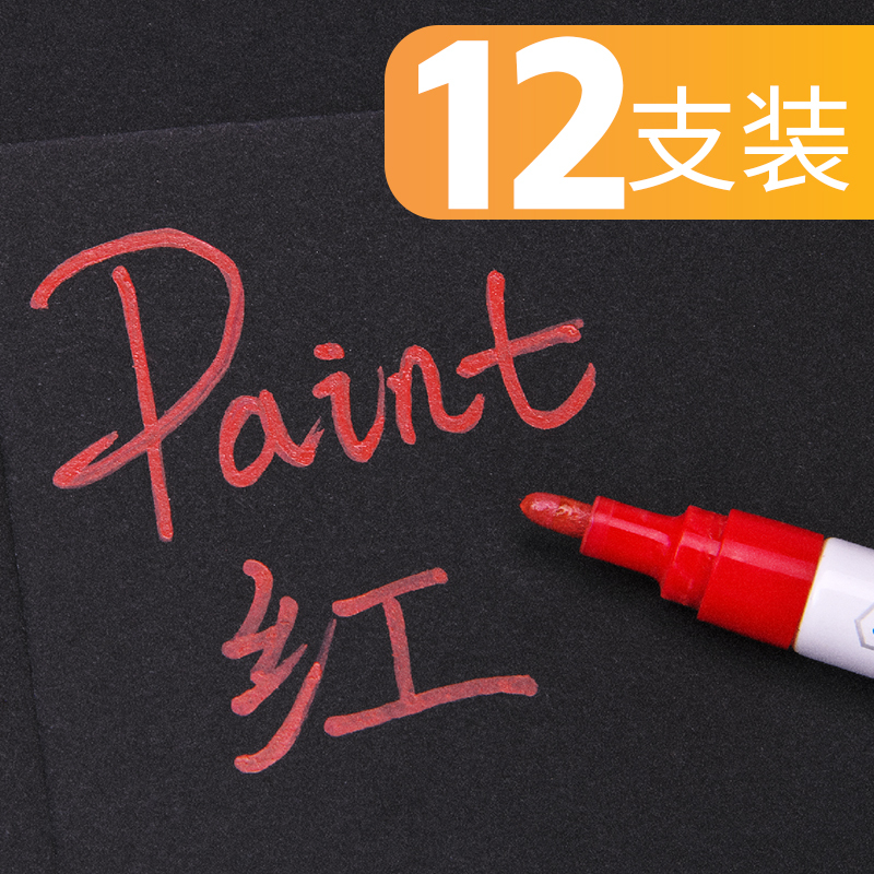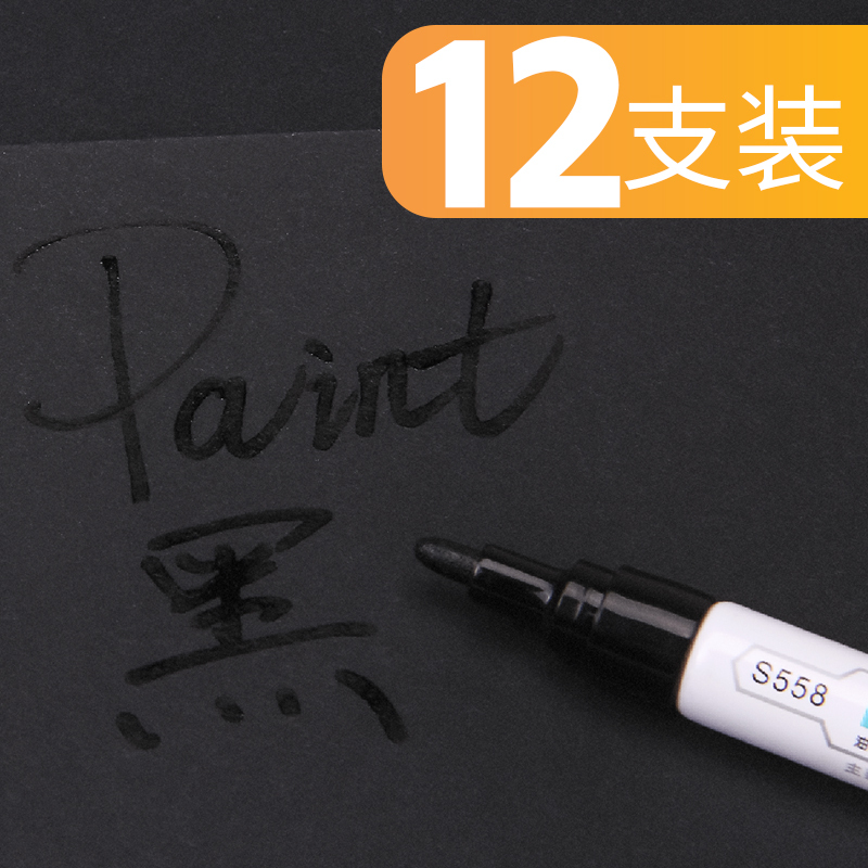 包邮得力S558油漆笔 补漆笔 白色记号笔轮胎笔 黑色 金色签到笔修补笔12支/盒 黄色(12支)