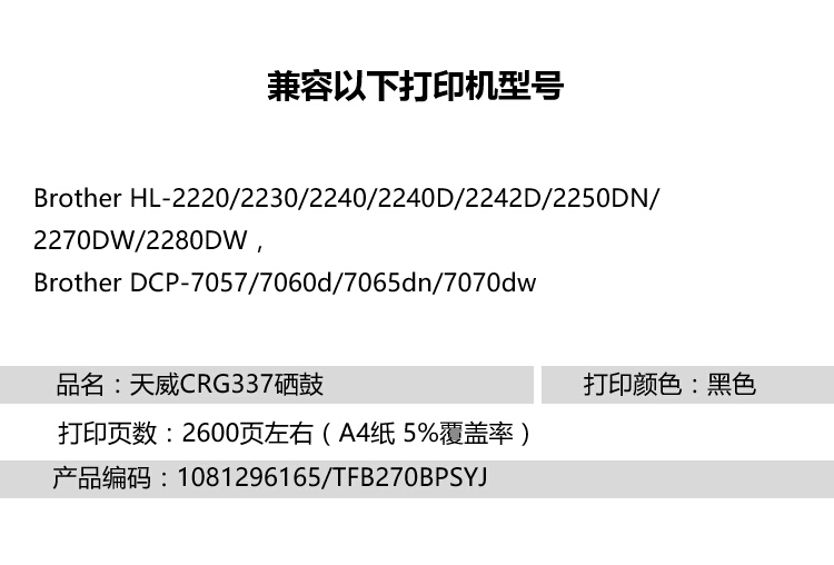 天威 适用于BROTHER-TN2225/LENOVO-LT2441 商用装黑粉盒 1081296165 黑色