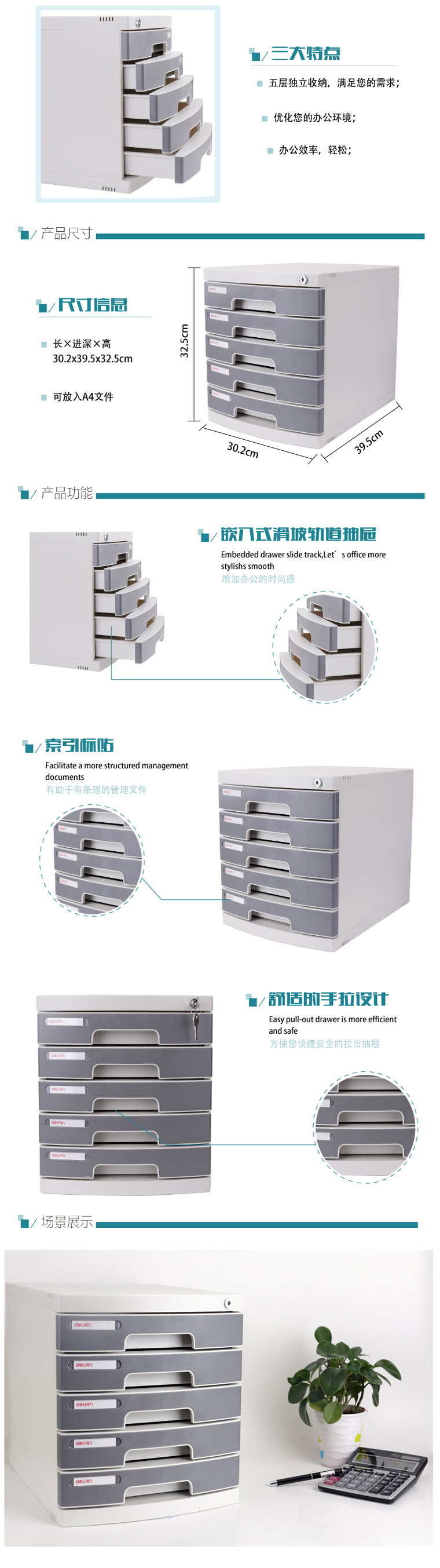 得力(Deli) 四层带锁文件柜 8854 灰色