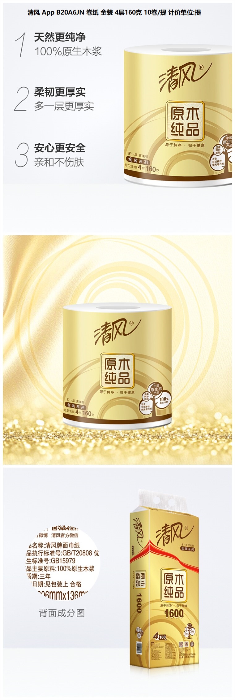 清风大盘卷纸 BJ02AB 2层 240m/卷 12卷/箱