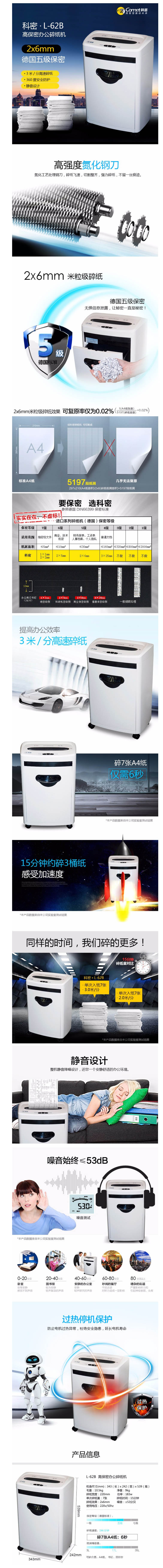 科密 Comet L-62B 碎纸机 静音 5级保密 碎纸效果 2*6mm 计价单位:台