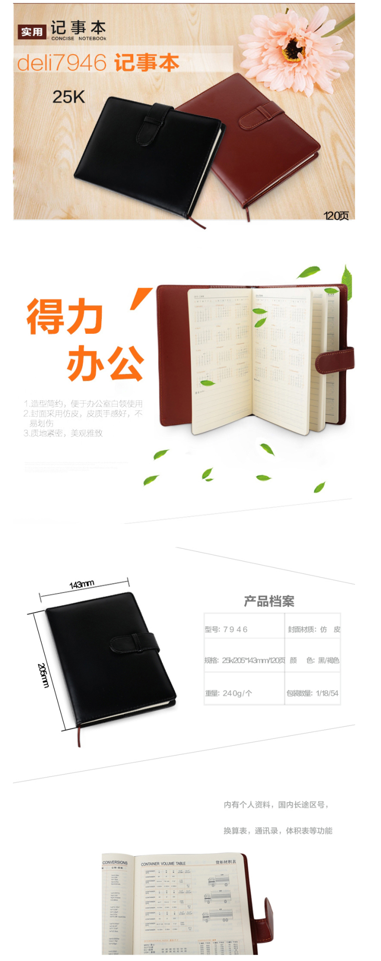 得力(deli) 笔记本 商务记事本 7911 120页 25K