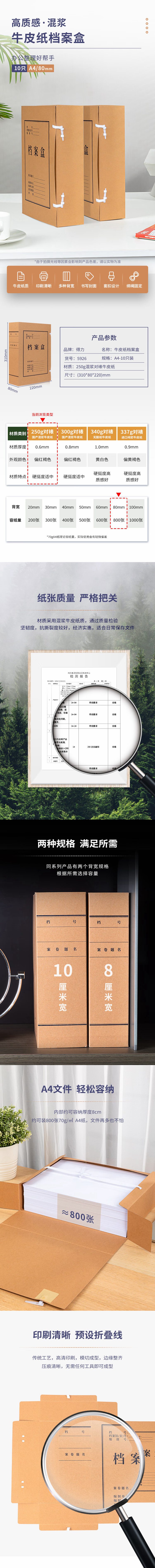 得力牛皮纸档案盒 5921 310*220*40mm 10个/包