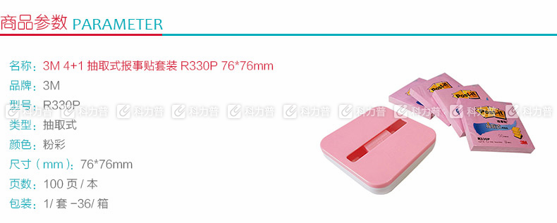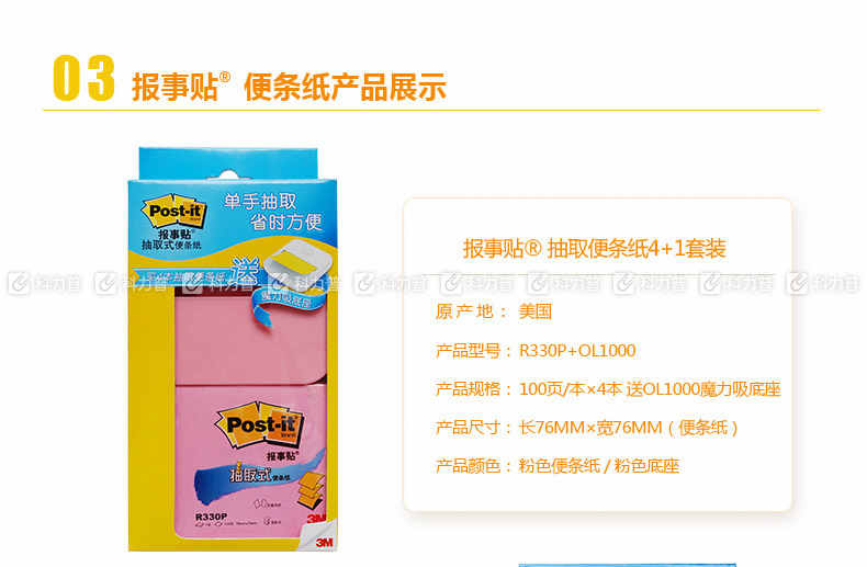 3M 4+1抽取式报事贴套装 R330P 76*76mm (粉彩混色) 4本/套 (赠魔力底座)