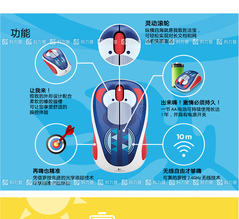 罗技 Logitech 有线激光鼠标 LS1 (黑色绿边) USB