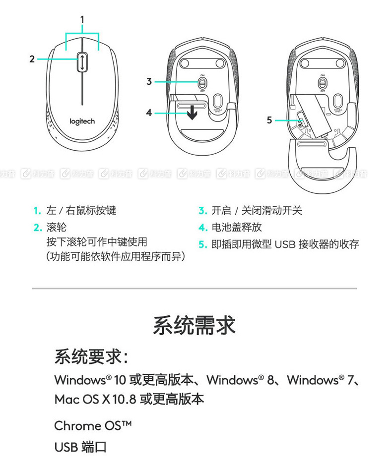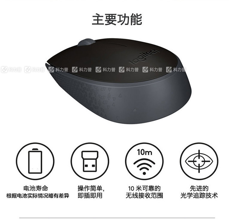 罗技 Logitech 有线激光鼠标 LS1 (黑色绿边) USB