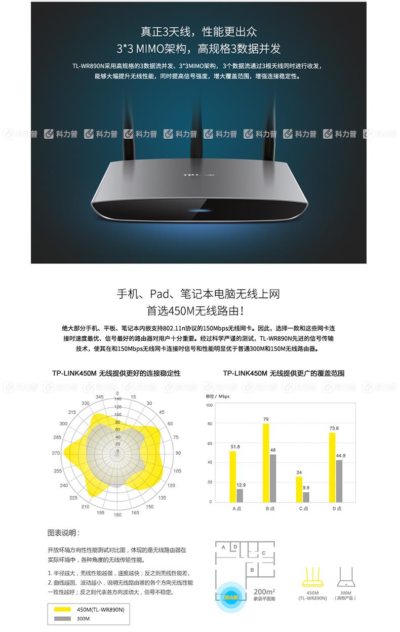 普联 TP-LINK 无线路由器 TL-WR941N 450M ...