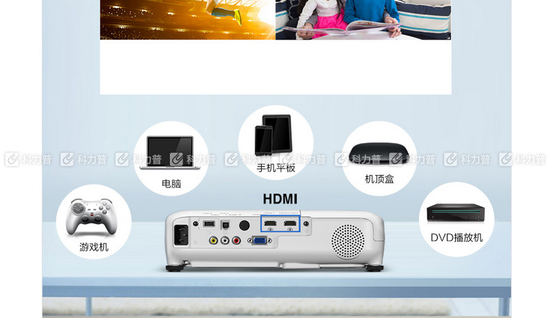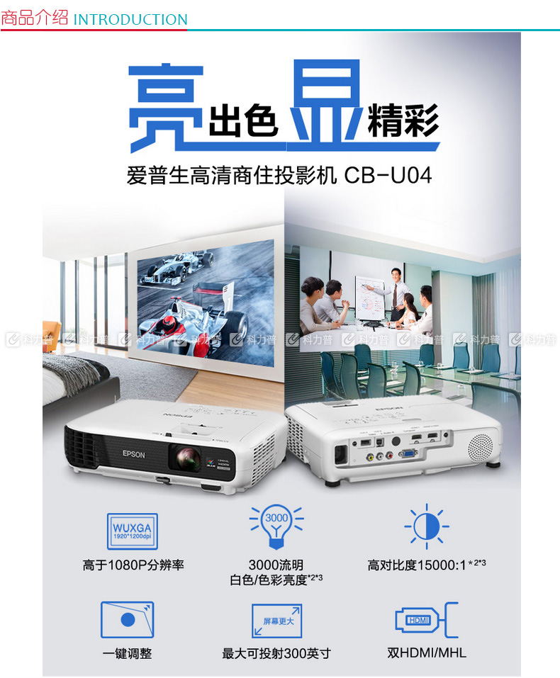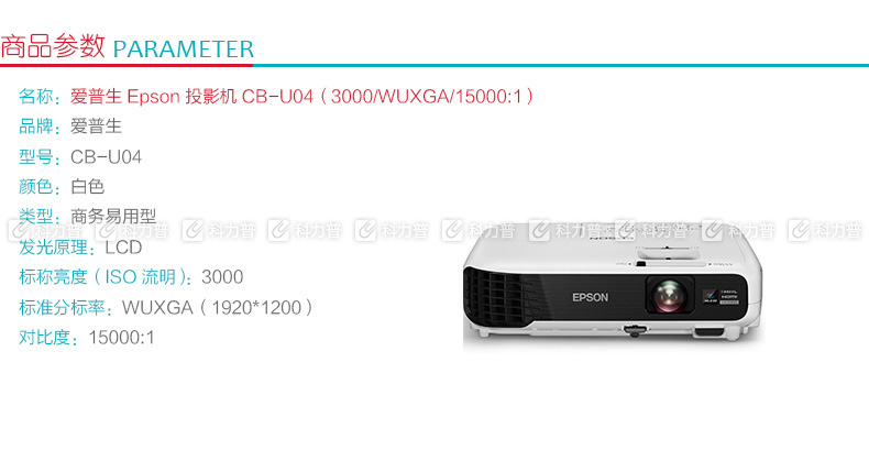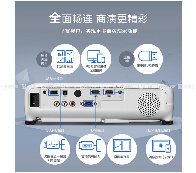 爱普生 EPSON 便携投影机 EB-C301MS(3000/W...