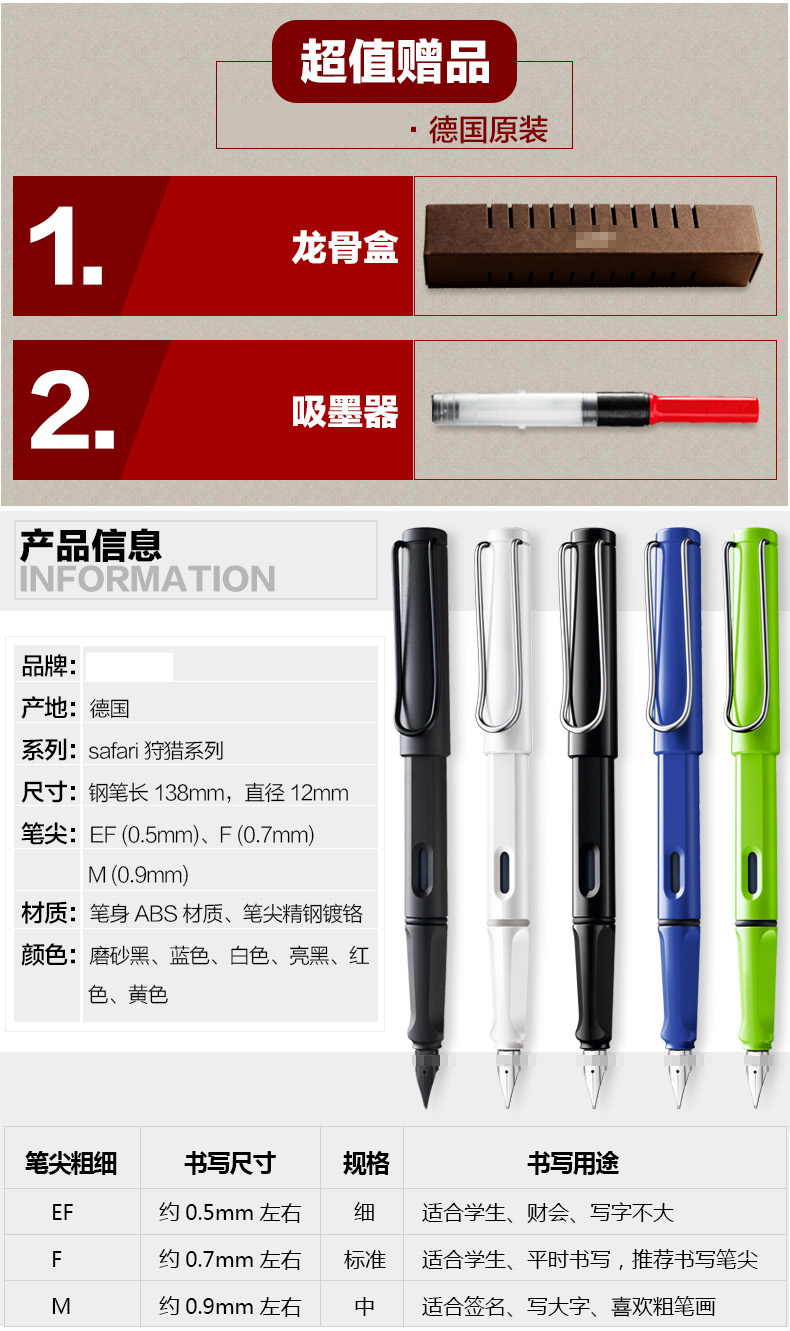 凌美(LAMY) Safari狩猎者系列钢笔商务礼品墨水笔磨砂黑EF尖 磨砂黑