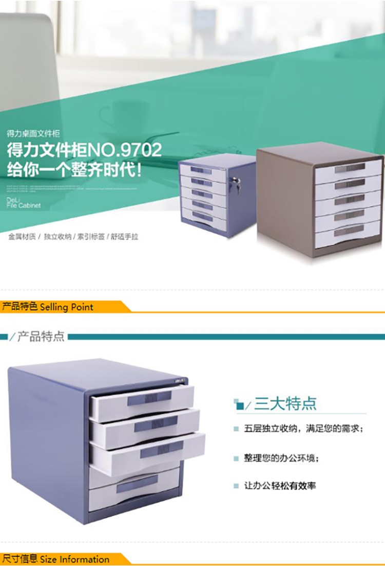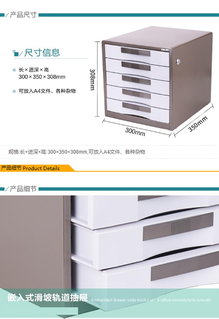 得力(Deli) 四层带锁文件柜 8854 灰色