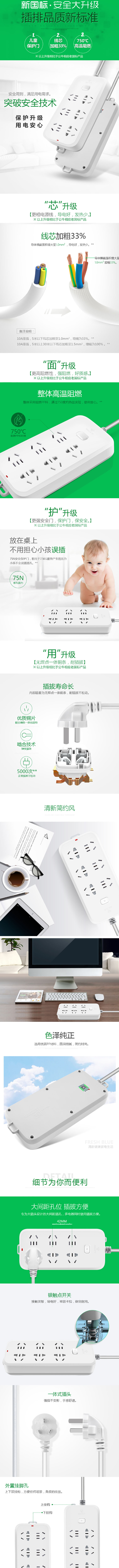 公牛(BULL)排插-5位总开 GN-602 3米 新国标