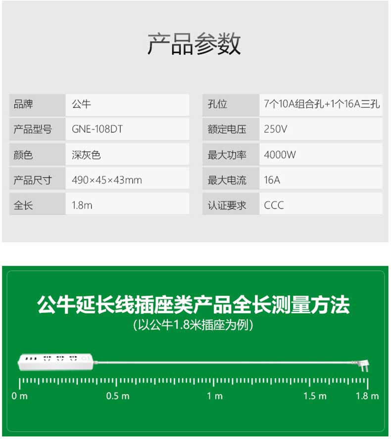 公牛(BULL)排插-5位总开 GN-602 3米 新国标