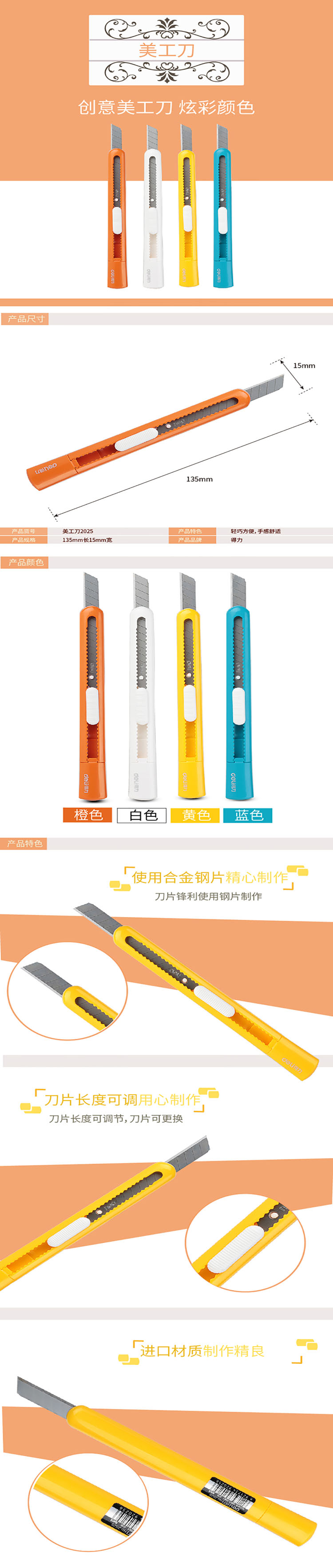 得力(deli)2031 小号美工刀推锁裁纸刀 混色