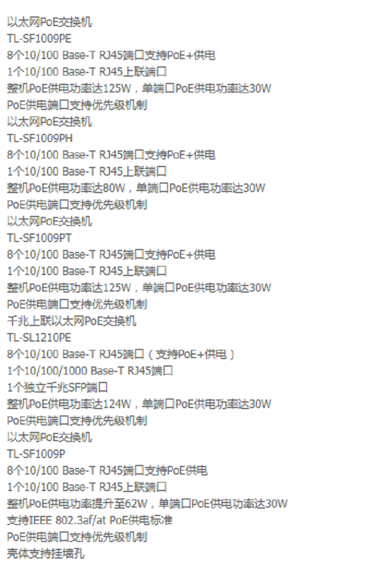 | 型号 | TL-SF1009PE | |