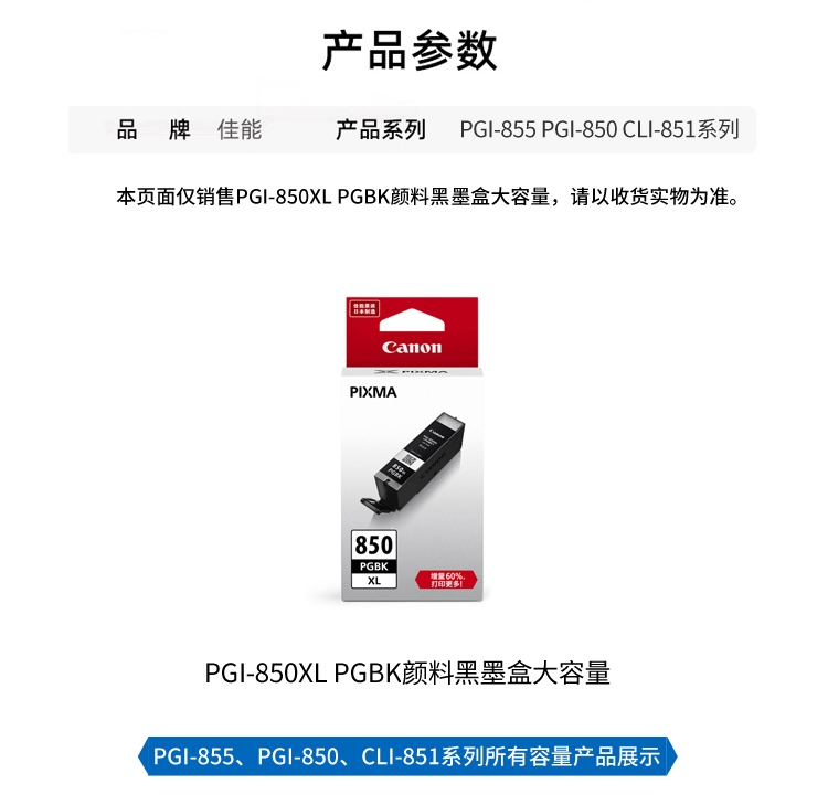 佳能(Canon) PGI-850 PGBK 黑色墨盒 (适用M...