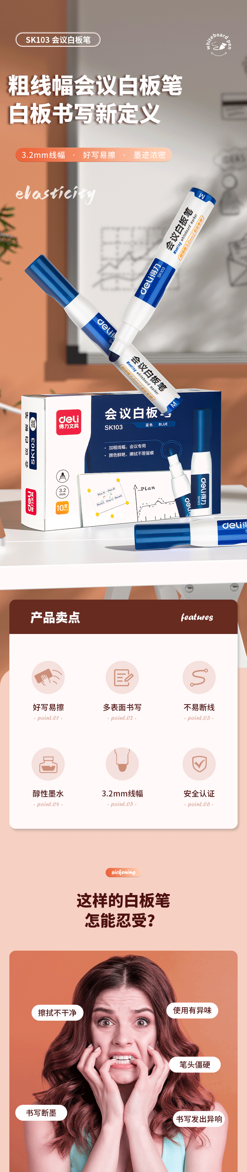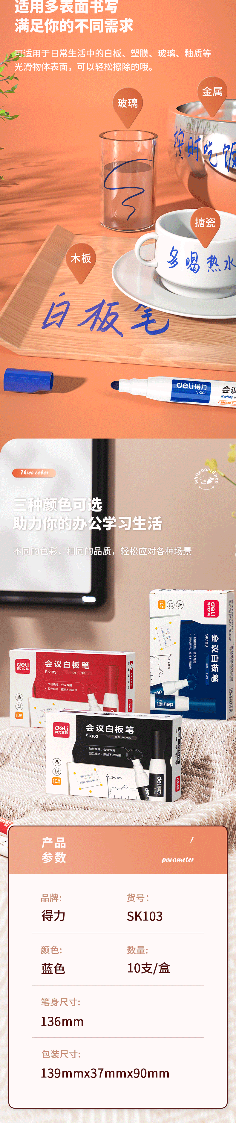 得力白板笔 6817颜色:蓝色