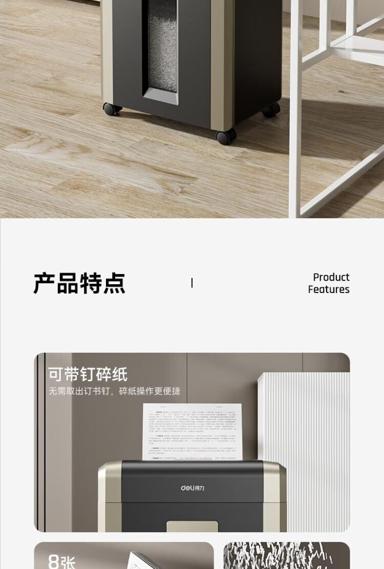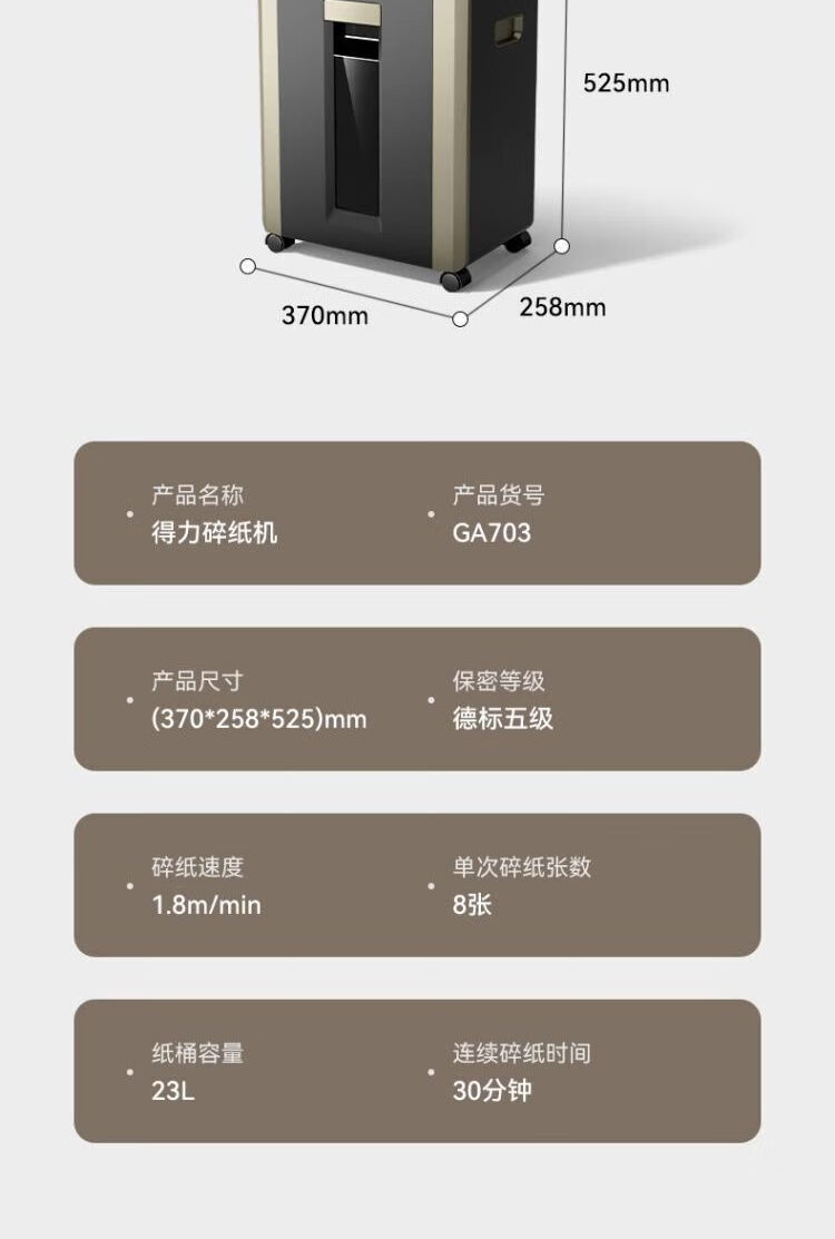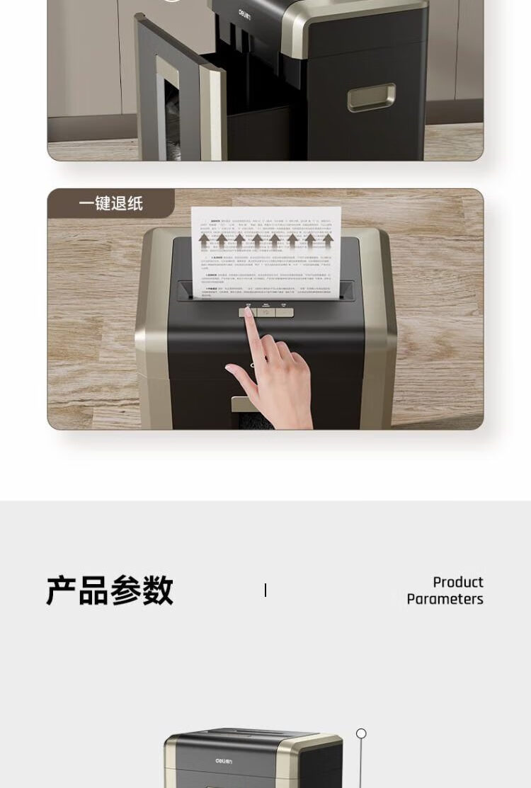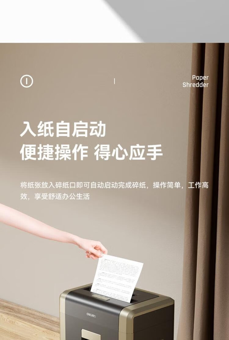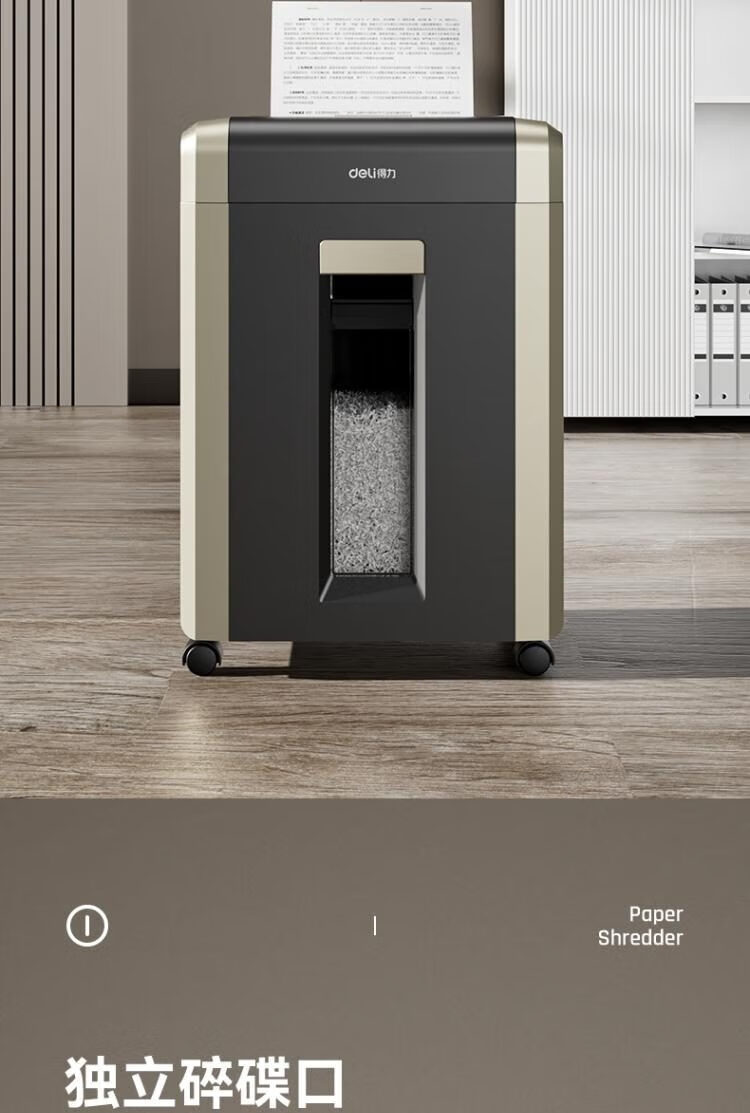 得力9904碎纸机 电动办公静音大功率自动光盘文件纸粉碎机4级保...