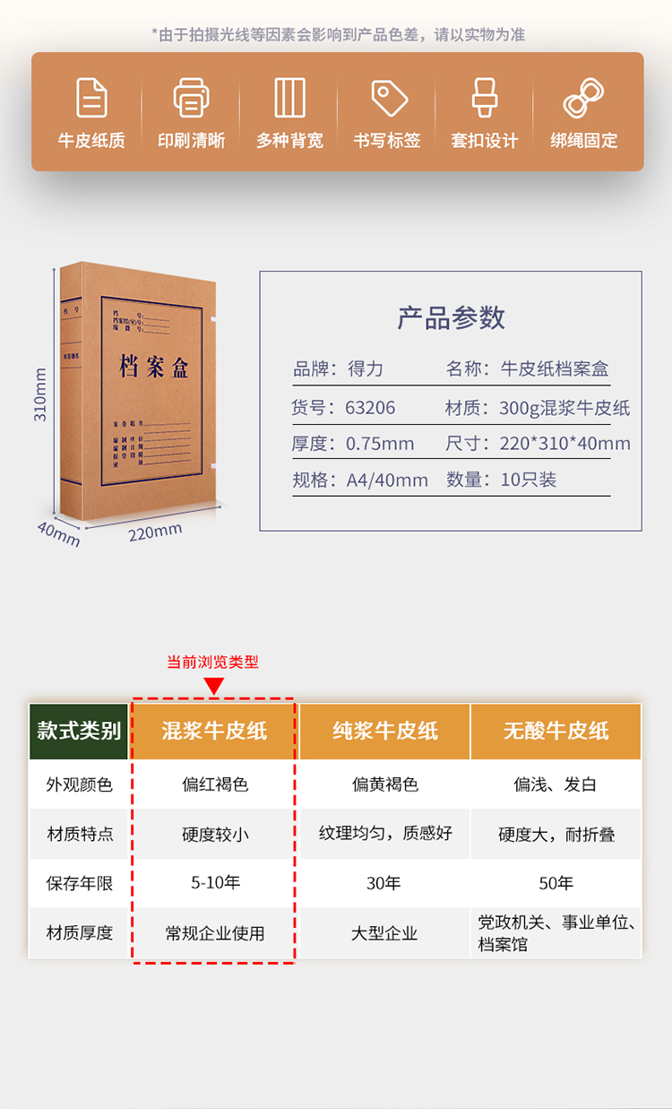得力牛皮纸档案盒 5921 310*220*40mm 10个/包