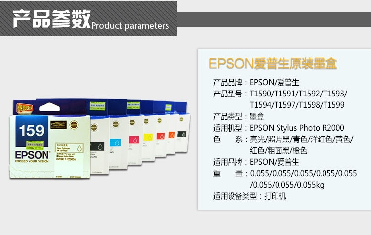 爱普生(Epson) 打印机墨盒 T1594 适用R2000 R2000S 黄色