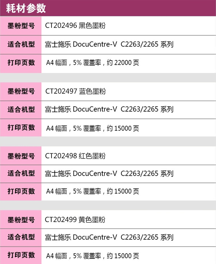 富士施乐(Fuji Xerox) 2263/2265 原装硒鼓组件墨粉粉盒 五代兰色墨粉CT202497