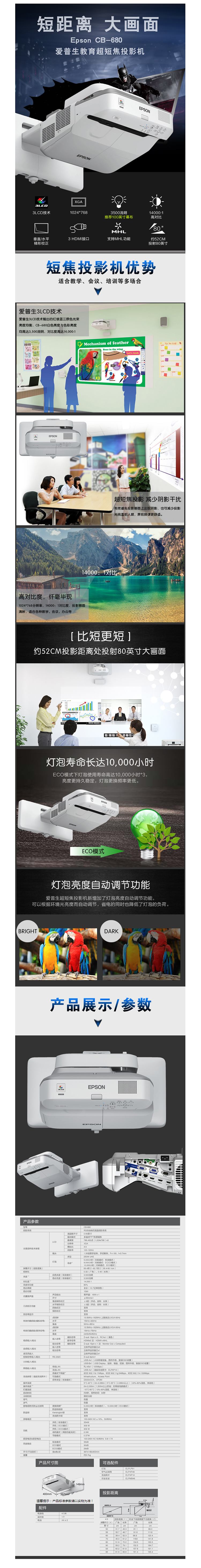 爱普生(EPSON)CB-530短焦教育投影机 家用高清商务办公...