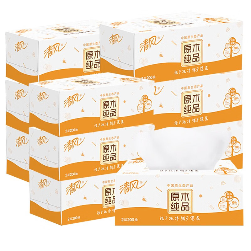 清风 原木纯品 盒抽 200抽双层 36盒
