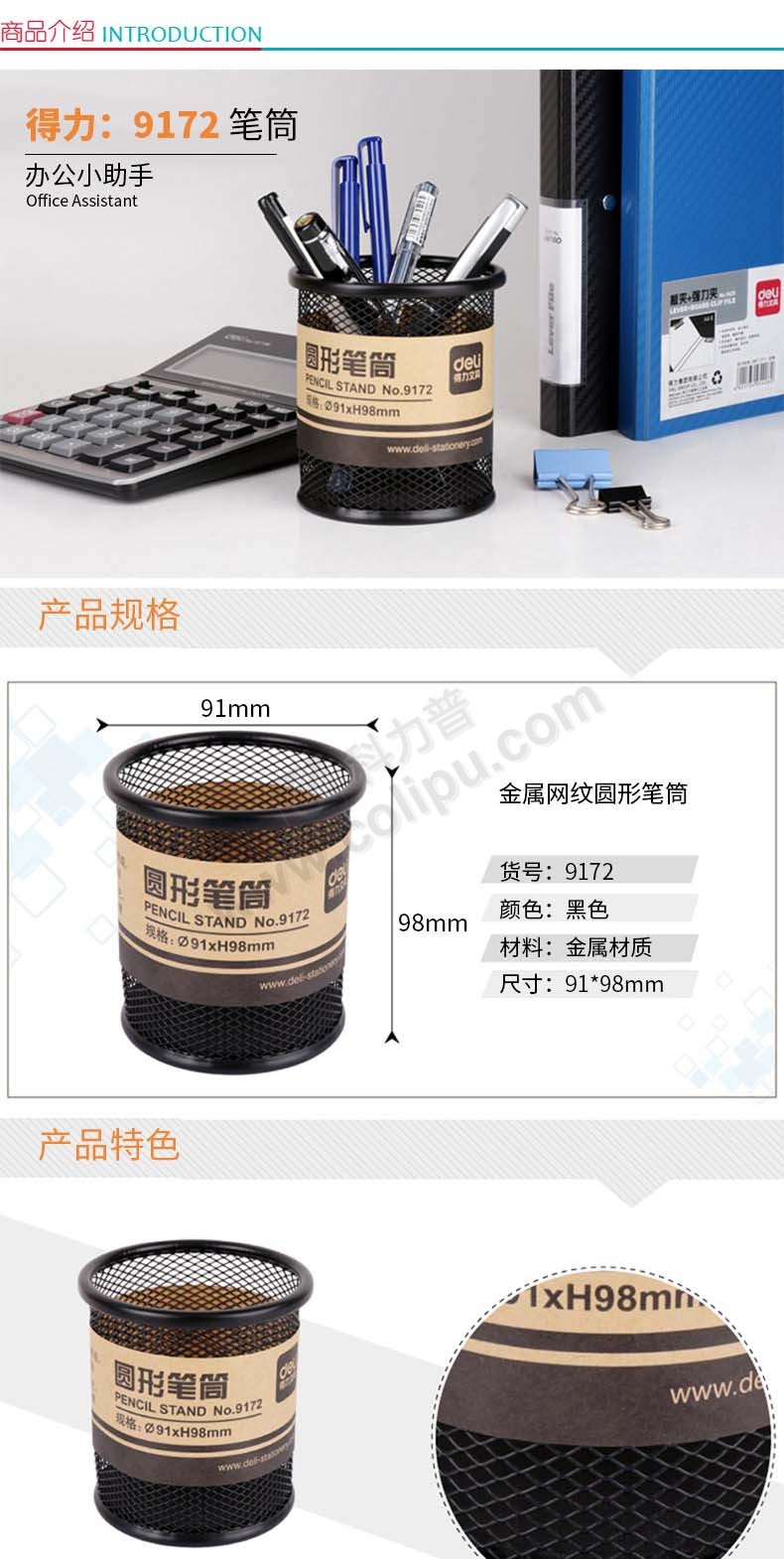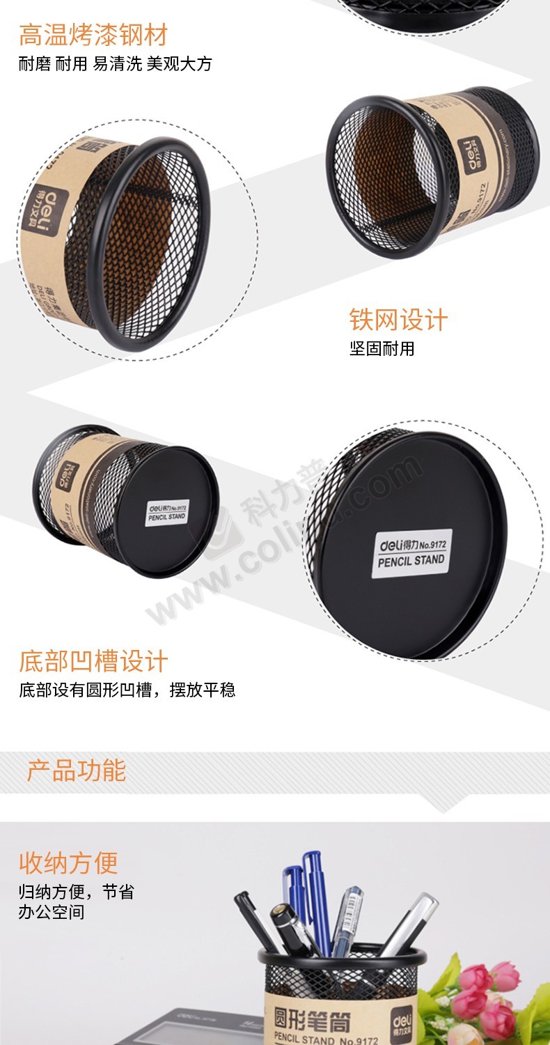 得力(Deli)铁网笔筒 909 圆形 黑色